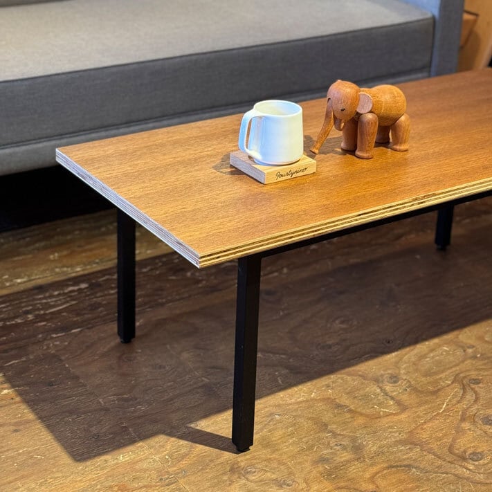 ・天板は積層の小口で上部がチーク材、足はスティール角パイプで出来たコーヒーテーブルです。